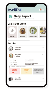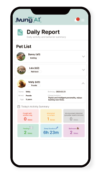 MungAI provides comprehensive AI monitoring of your pet’s daily activities, health, and safety.